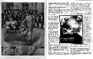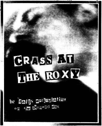 For the first few months of 1977 the Roxy club, black hole in the wet London streets, drain sucker for the painted sewer rats, played host to a phenomenon. Out from the hippy coffin of Haight Asbury, out from the rural corpses where anarchy was has hidden its face these last years, out again to the streets. The voice of hope. The cry of futures that were burried in the narcotic fuck-up of the sixties. Punk came out to air its dirty wings, pheonixing from a stagnant mire that is the Beach Boy's sperm at Malibu, the Beatles death-pickings in Central Park. High street hi-jinks. The Pistols, The Damned, Clash,The Stranglers, The Jam. New sounds, new vocablulary. The dirty little Roxy bounced to the new energy and Wall Street and the City pricked their dollar ringing ears. Within six months the new anarchy was bought up,the capitalists counter-revolutionaries had killed with cash. Punk shot from being a movement for change to become the biggest media bonanza since "hippy". In six months it became a burnt out memory of how it might have been. Bought up, cleaned up, souped up. Stereo jerk-off, just another cheap product for the middle class consumer.